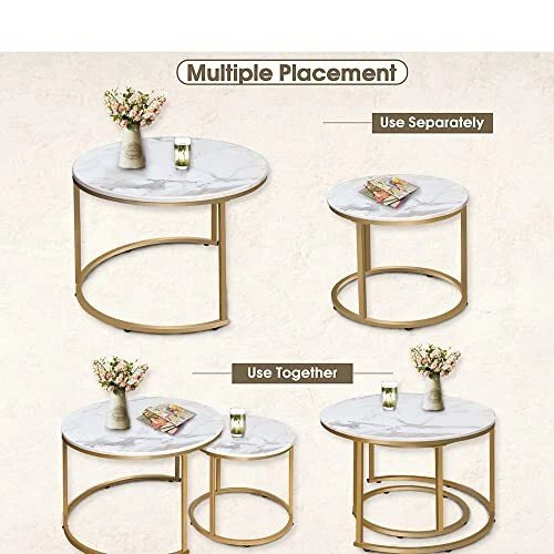 Elevate your living space with the Aurelia Marble Nesting Tables — a sophisticated blend of sleek gold frames and luxurious faux marble tops. Designed for versatility and style, these space-saving tables nest seamlessly, offering both function and flair to your modern home.